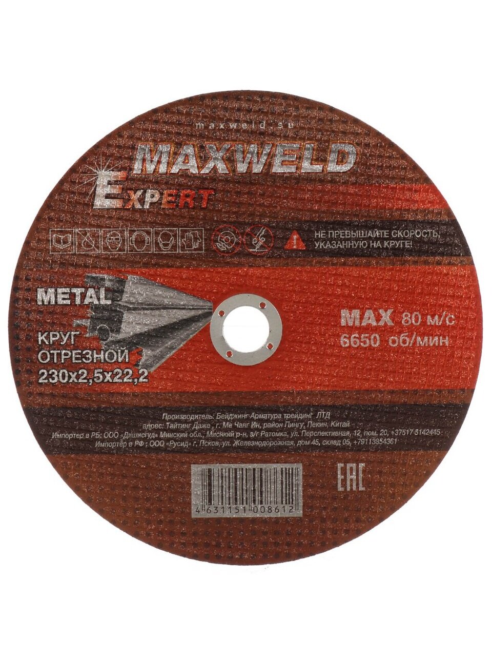Вы можете приобрести «Круг отрезной по металлу, Maxweld, Expert, диаметр 230х2.5 мм, посадочный диаметр 22.2 мм» и другие товары в нашем интернет-магазине в Краснодаре по низким ценам и с бесплатным самовывозом.