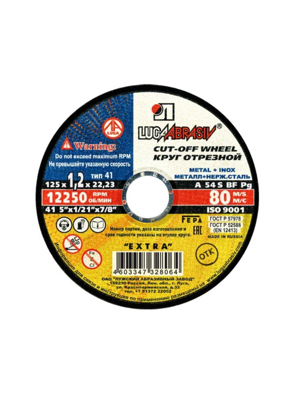 Вы можете приобрести «Круг отрезной по металлу, LugaAbrasiv, Extra, BF, диаметр 125х1.2 мм, посадочный диаметр 22.23 мм, зернистость A54, 400 шт» и другие товары в нашем интернет-магазине в Белгороде по низким ценам и с бесплатным самовывозом.