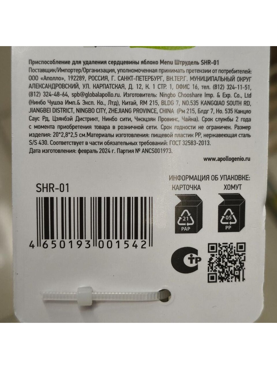 Вы можете приобрести «Нож для удаления сердцевины яблок нержавеющая сталь, пластик, 20.5 см, навеска, в ассортименте, Apollo, Menu Штрудель, SHR-01» и другие товары в нашем интернет-магазине в Клинцах по низким ценам и с бесплатным самовывозом.