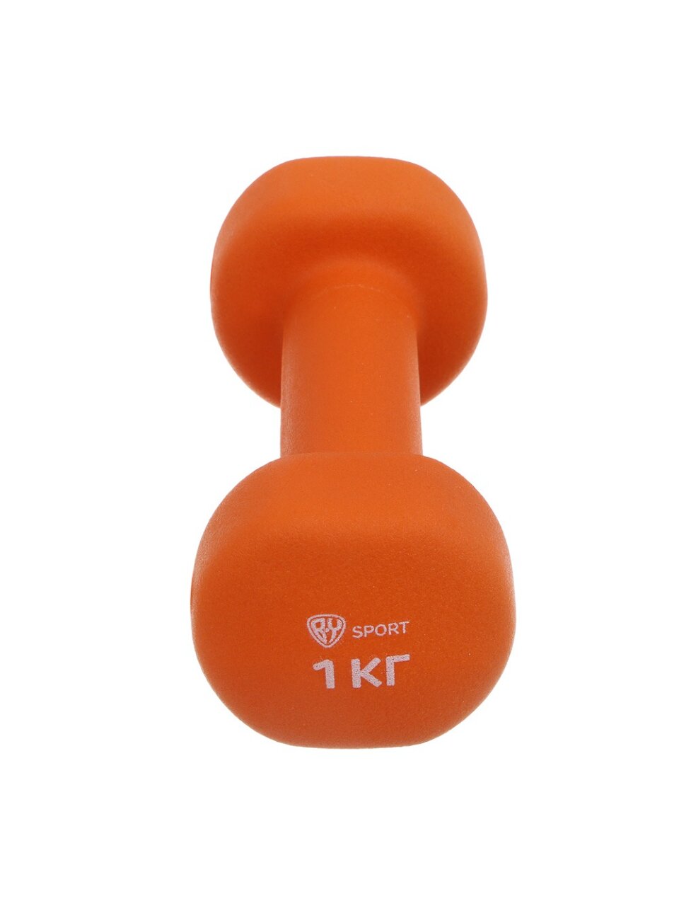 Гантель весит 1 кг, выполнена из металла с оранжевым неопреновым покрытием для комфорта и безопасности.