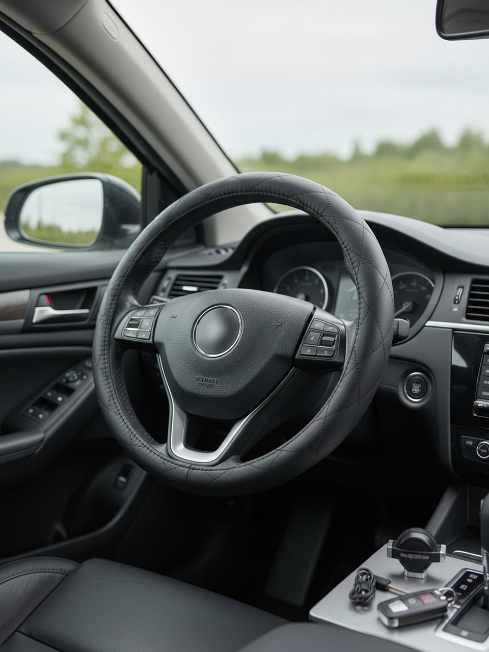 - Эко кожа, размер М — долговечность, простая очистка, подходит для большинства рулей 37–39 см.
