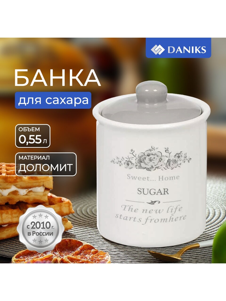 Вы можете приобрести «Банка для сыпучих продуктов, доломит, 0.55 л, с крышкой, Daniks, Сахар Классик, HC3D01B-N1» и другие товары в нашем интернет-магазине в Смоленске по низким ценам и с бесплатным самовывозом.