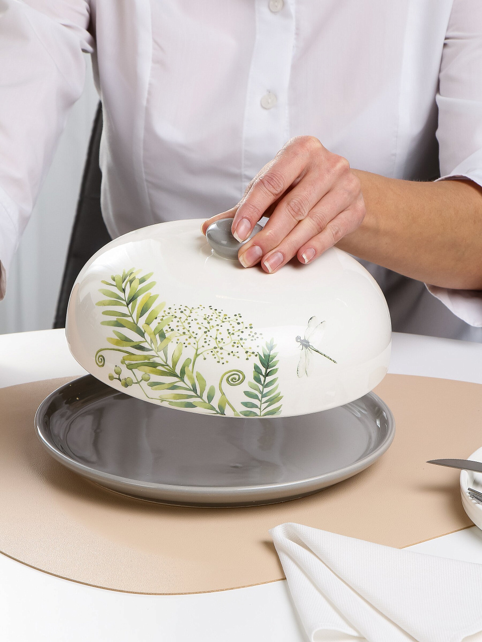 Керамическое блюдо PRIMA COLLECTION «Дикий папоротник», 23 см с крышкой — стильное решение для сервировки и хранения, идеальный подарок для дома и дачи.
