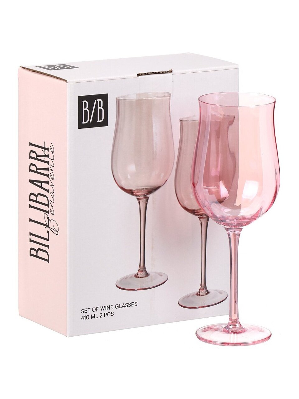 Объём каждого бокала — 410 мл, форма — тюльпан, материал — выдувное стекло, цвет — розовый. В наборе 2 бокала.