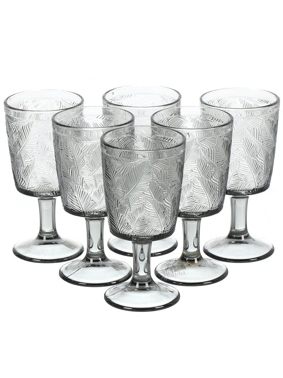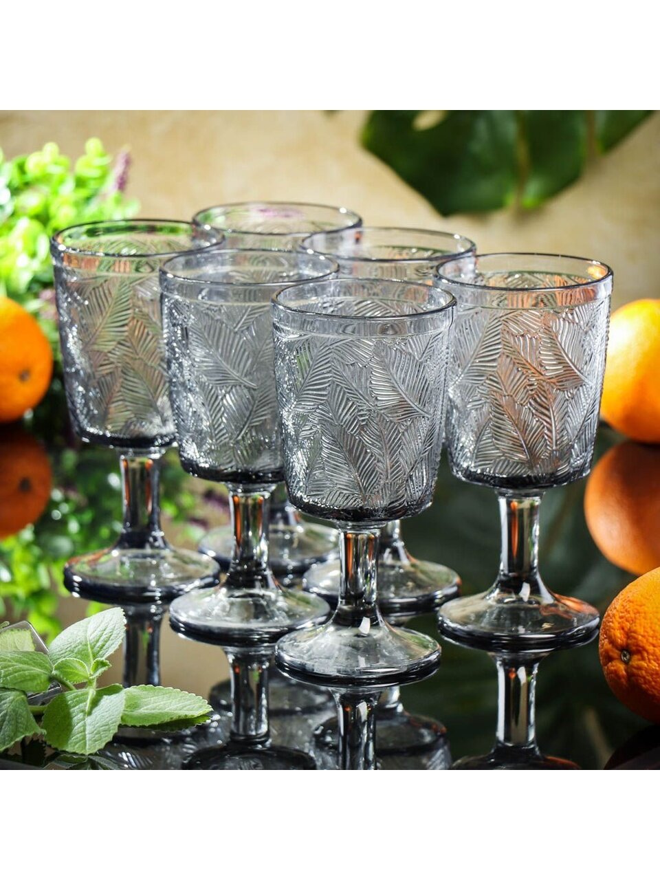 Набор бокалов для вина 330 мл, 6 шт, рельефное стекло с серым узором «Листья» — стильный подарок и практичное решение для сервировки на любой праздник.