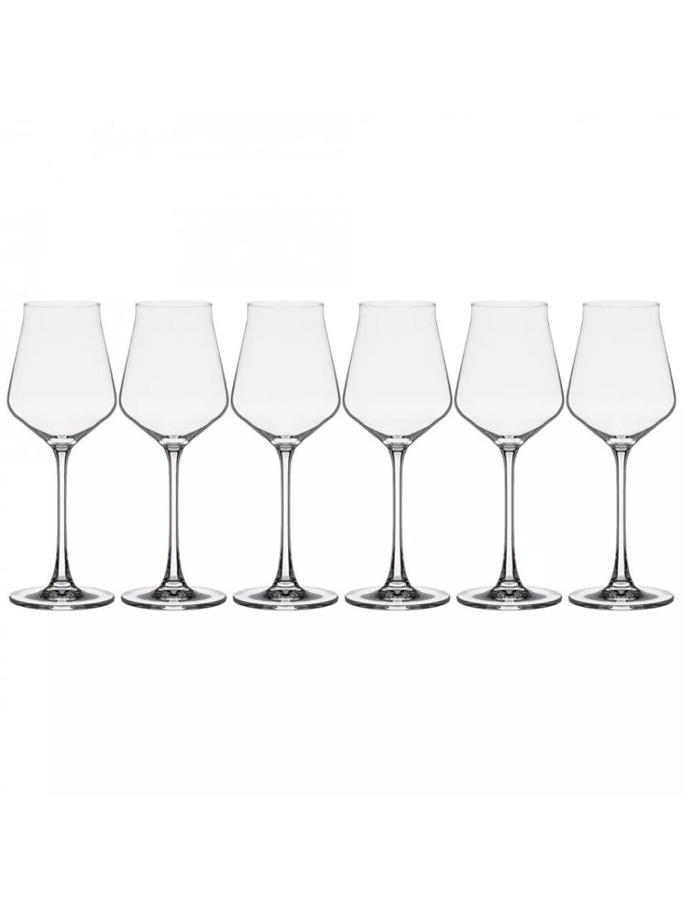 Бокалы изготовлены из выдувного стекла, объём — 310 мл, форма — тюльпан, гладкая текстура, в наборе 6 штук, страна производства — Чехия.