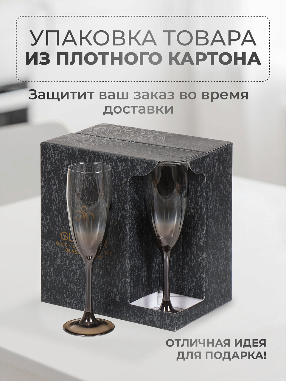 Набор бокалов Glasstar «Шоколад Омбре» — удачный выбор, если вы ищете, какие бокалы для шампанского купить для особых случаев или ежедневного использования. Гладкая текстура, элегантная форма флютте и глубокий коричневый оттенок делают эти бокалы акцентом любой сервировки. Благодаря машинному способу изготовления и выдувному стеклу бокалы устойчивы к царапинам и сохраняют блеск даже при частом использовании.