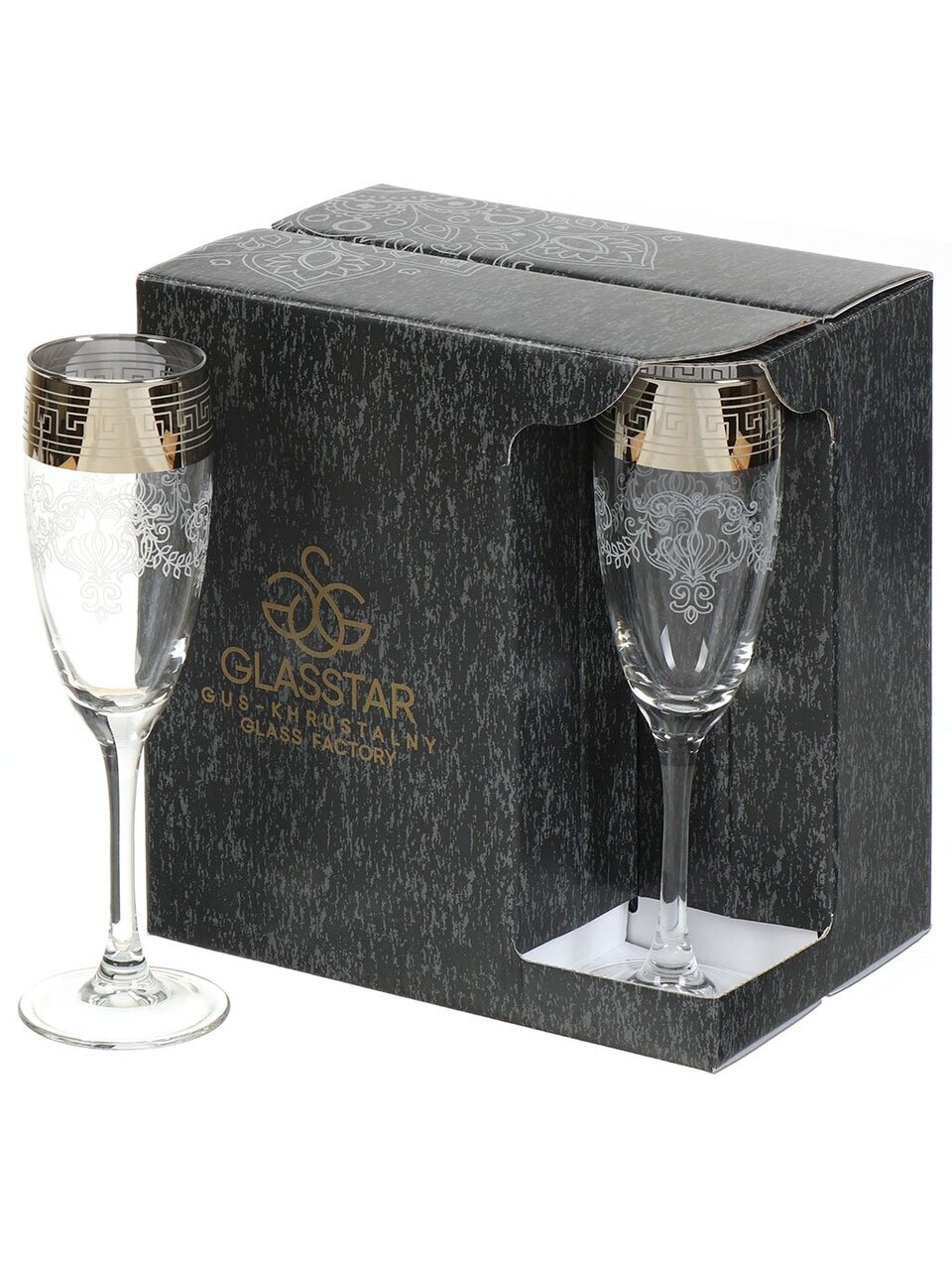 Бокалы для шампанского Glasstar Барокко 170 мл (6 шт) — элегантное решение для праздничной сервировки и стильного подарка. Выдувное стекло, изысканный орнамент, подарочная упаковка.