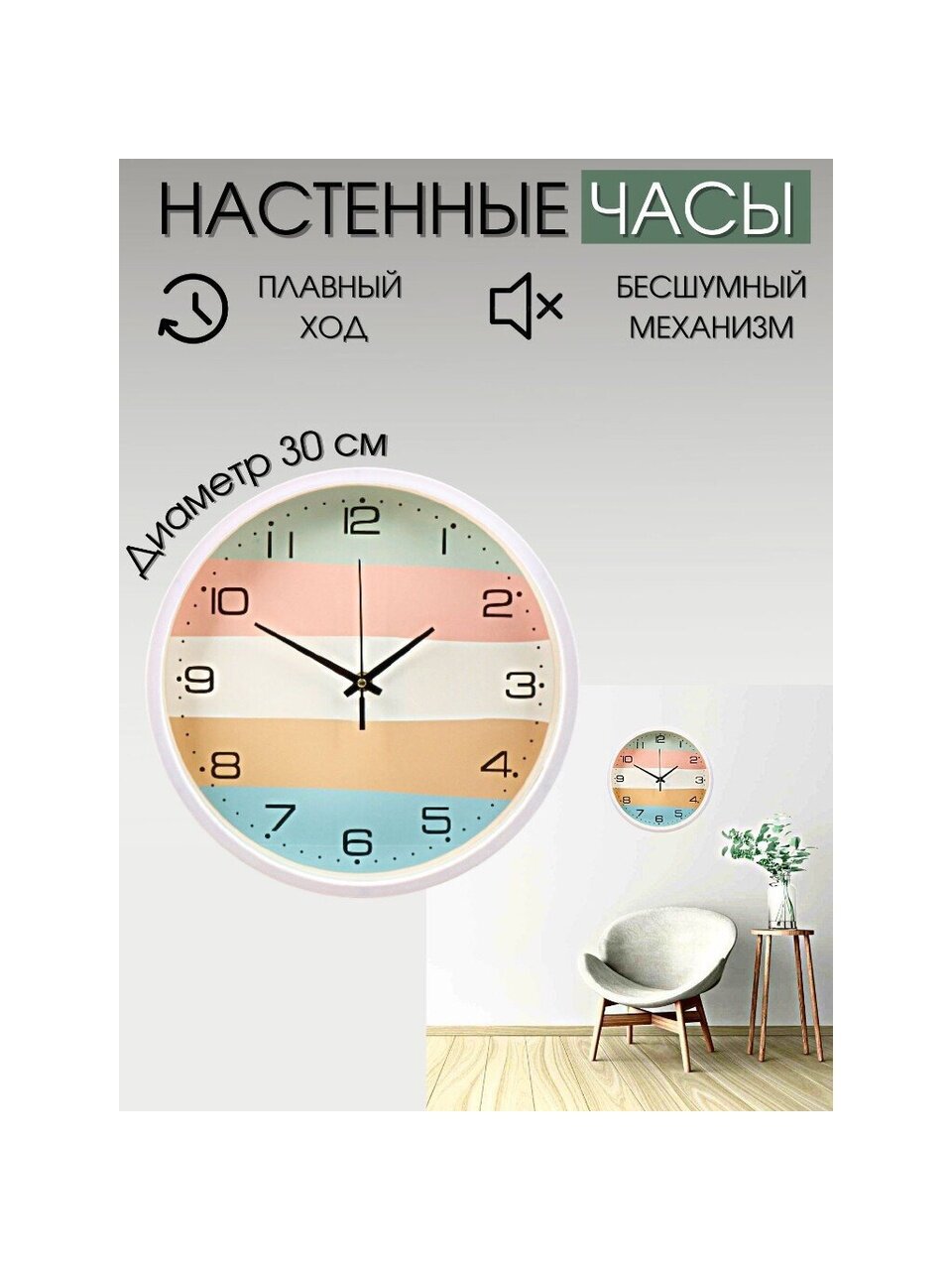 - Рисунок циферблата: разноцветные полосы ;
