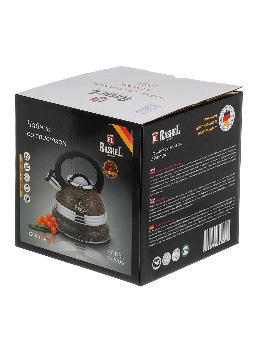 Вы можете приобрести «Чайник нержавеющая сталь, 3.2 л, со свистком, зеркальный, RasheL, индукция, коричневый, М-7905» и другие товары в нашем интернет-магазине в Орле по низким ценам и с бесплатным самовывозом.