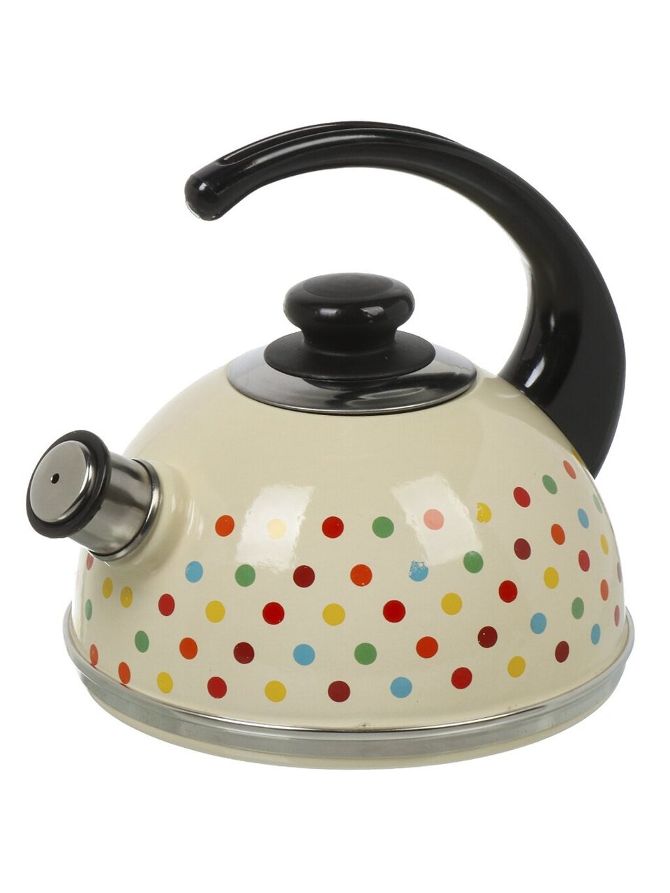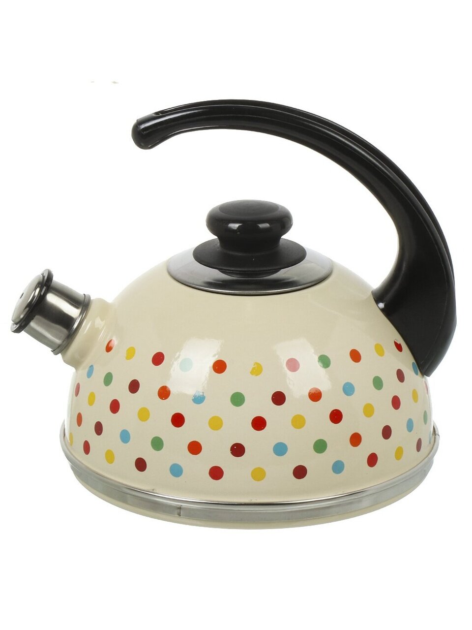 Вы можете приобрести «Чайник сталь, эмалированное покрытие, 2.5 л, со свистком, ручка консольная, Рубин, Разноцветные горохи, слоновая кость, T04/25/04/24» и другие товары в нашем интернет-магазине в Смоленске по низким ценам и с бесплатным самовывозом.