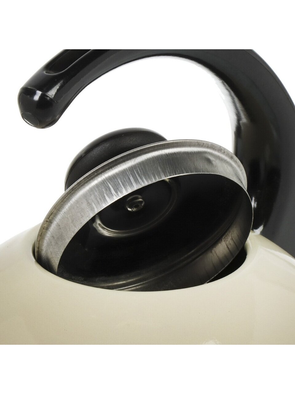 Чайник объемом 2.5 литра оснащен удобной консольной ручкой, которая обеспечивает комфортное и безопасное использование, даже когда чайник наполнен до краев. Термоизолированная ручка гарантирует, что вы не обожжетесь, а наличие свистка своевременно известит о закипании воды. Это делает его не только практичным, но и безопасным для использования в повседневной жизни.