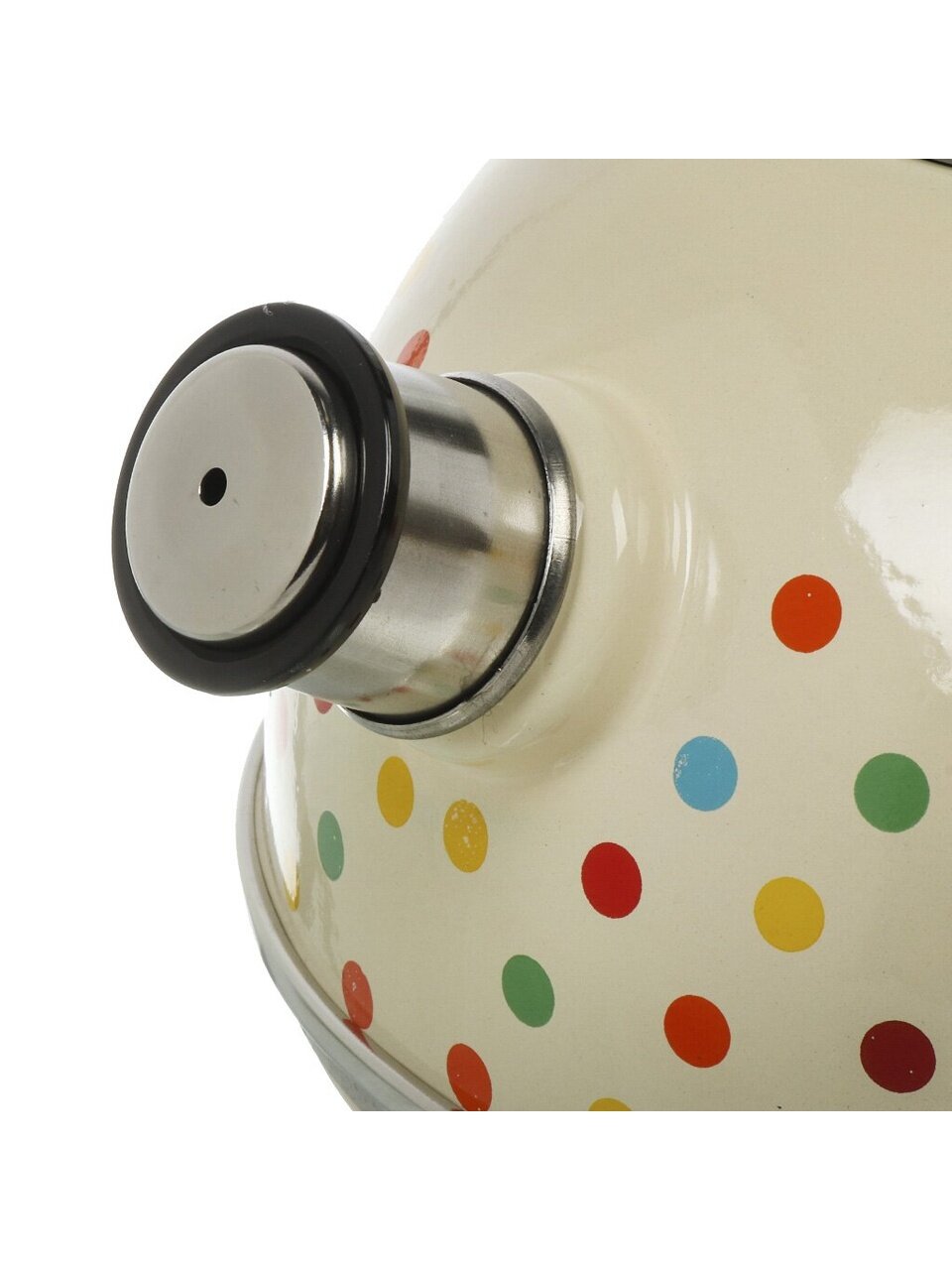 Декор в виде разноцветных горошин на фоне слоновой кости придает изделию уникальность и шарм, что делает его отличным подарком для любителей ярких акцентов на кухне. Несмотря на отсутствие совместимости с индукционными плитами, чайник идеально подходит для использования на газовых, стеклокерамических и электрических плитах, что делает его универсальным помощником на кухне.