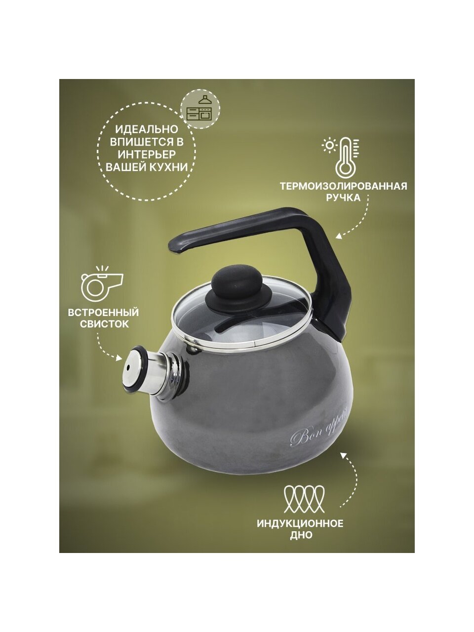 - Свисток у чайника съемный.
