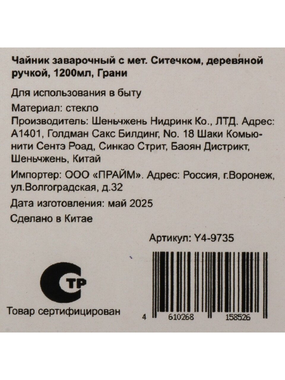 Вы можете приобрести «Чайник заварочный стекло, 1.2 л, с металлическим ситечком, деревянной крышкой и ручкой, Грани, Y4-9735» и другие товары в нашем интернет-магазине в Клинцах по низким ценам и с бесплатным самовывозом.