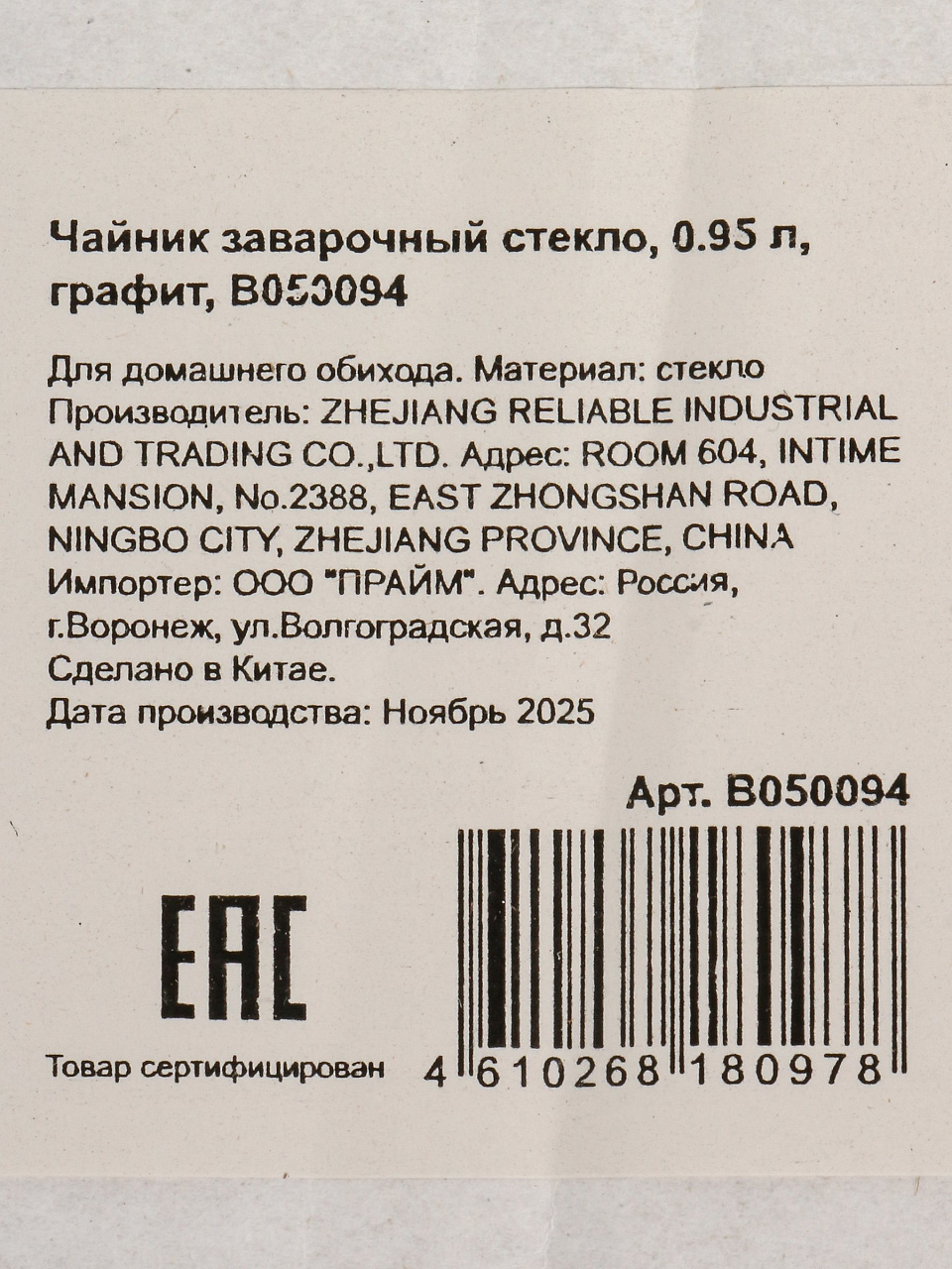 Оформите заказ сейчас — получите выгодную цену и быструю доставку. Гарантируем подлинность, безопасность и долгий срок службы заварочного чайника B050094.