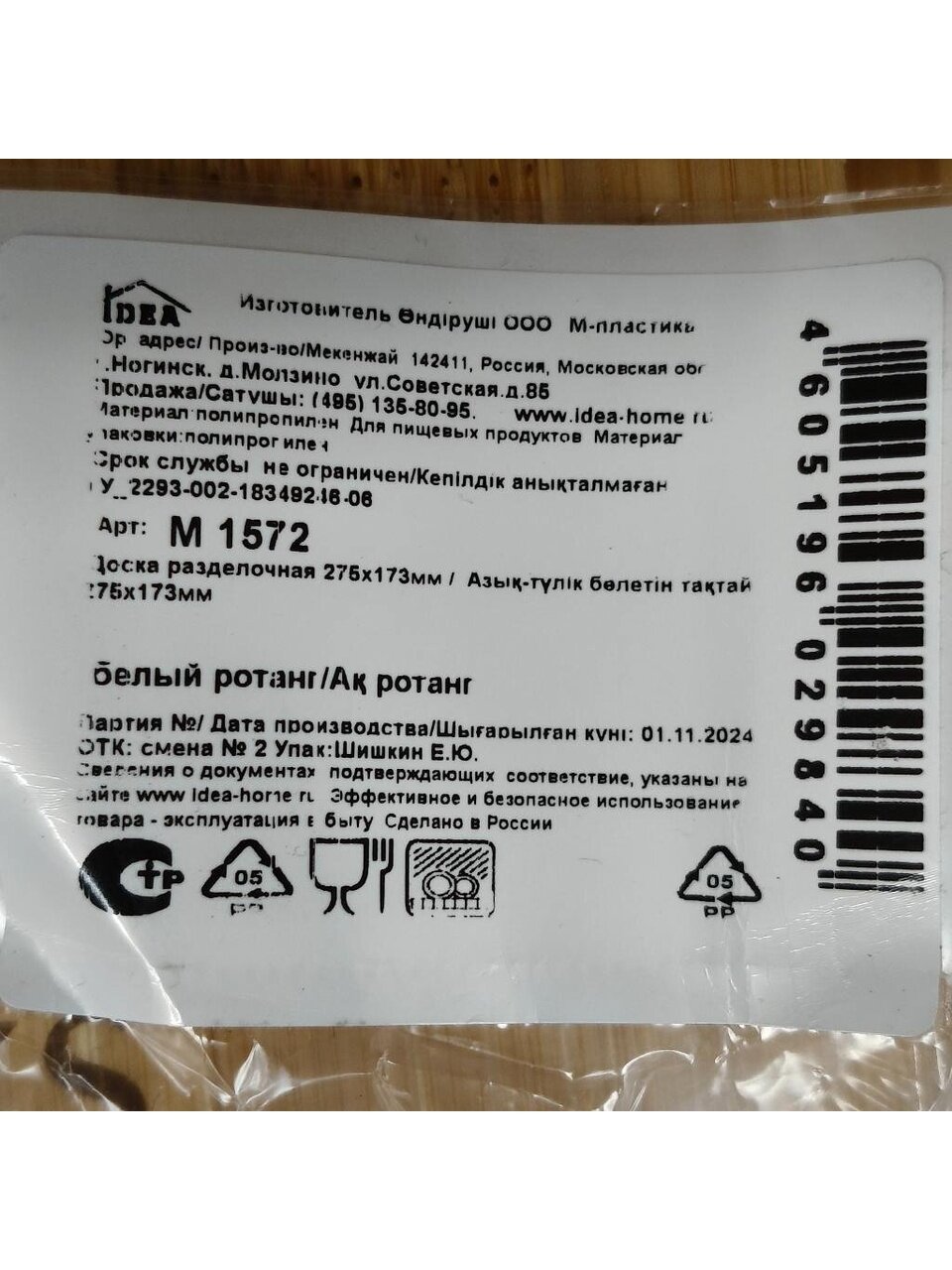 Доска из качественной пластмассы не впитывает запахи, не портит лезвие ножа