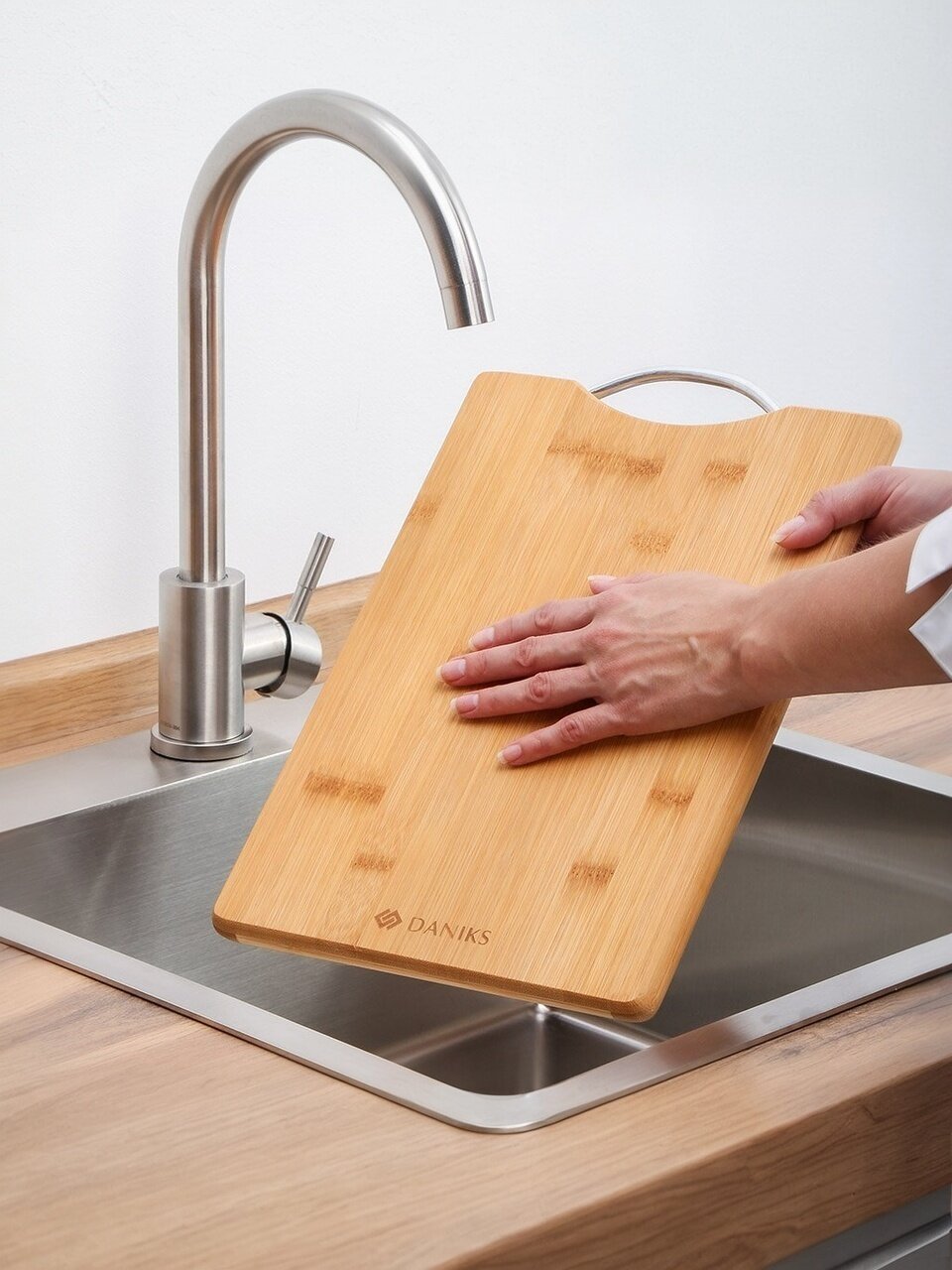 Разделочная доска из бамбука - это незаменимый аксессуар на любой кухне. Она изготовлена из натурального бамбука, обеспечивающий длительный срок эксплуатации изделий. В отличие от других досок (пластик, бук или береза) эта доска не только легко моется и не скапливает бактерии, но и не расслаивается при регулярном использовании.