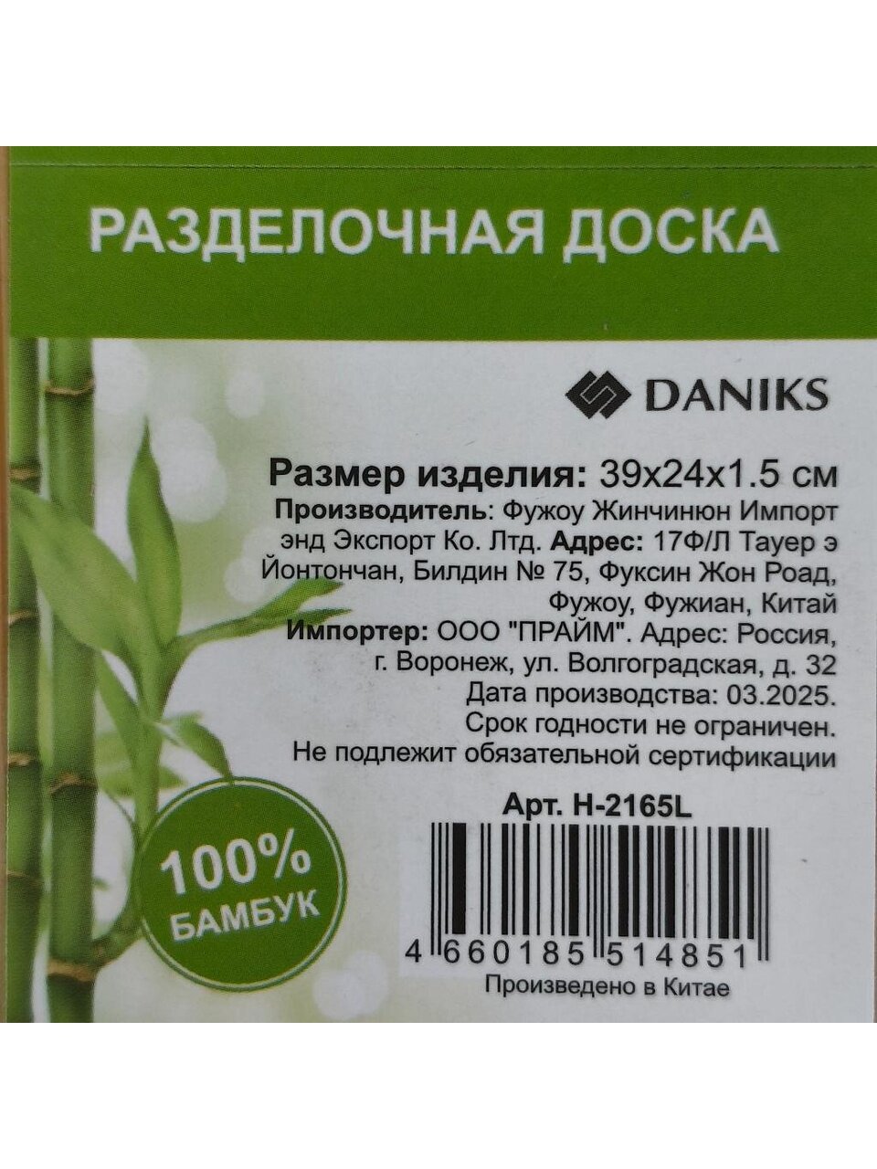 - Материал: бамбук;