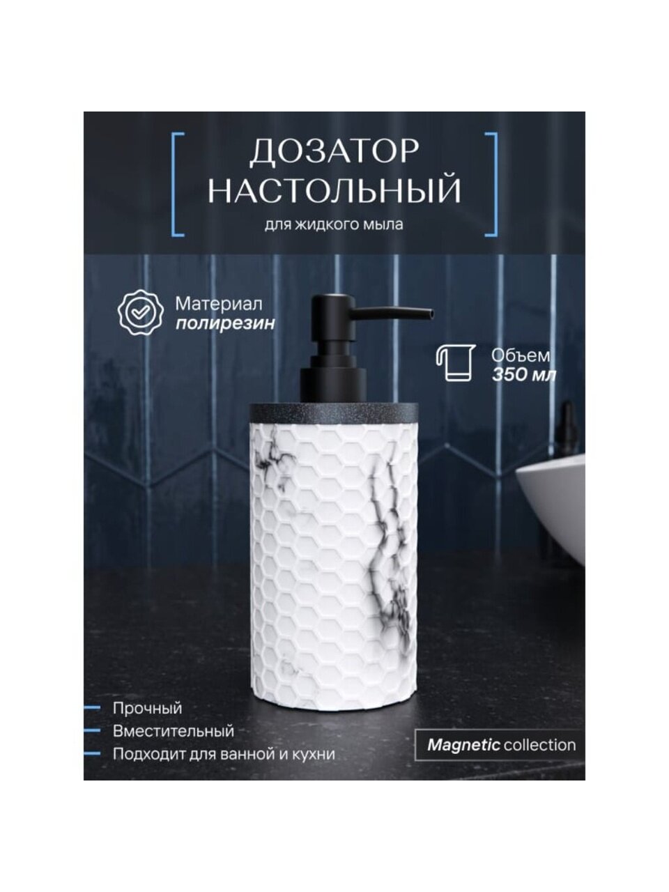 Вы можете приобрести «Дозатор для жидкого мыла, Fora, Magnetic, полирезин, 19.5х7.5 см, 350 мл, FOR-MGN021» и другие товары в нашем интернет-магазине в Коврове по низким ценам и с бесплатным самовывозом.