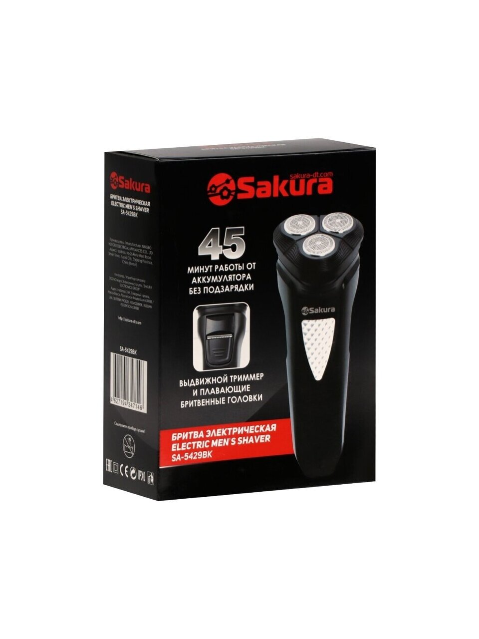 Вы можете приобрести «Электробритва аккумуляторная, Sakura, SA-5429BK, роторная, сухое бритье, 3 бритвенные головки, черная, SA-5429BK» и другие товары в нашем интернет-магазине в Казани по низким ценам и с бесплатным самовывозом.