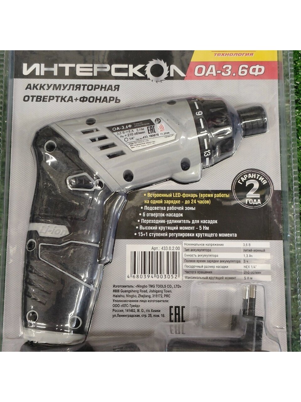 Вы можете приобрести «Отвертка аккумуляторная, Интерскол, ОА-3.6Ф Д Мастер, 3.6 В, 1.3 А.ч, Li-ion, 210 об/мин, блистер, 433.0.2.00» и другие товары в нашем интернет-магазине в Курске по низким ценам и с бесплатным самовывозом.