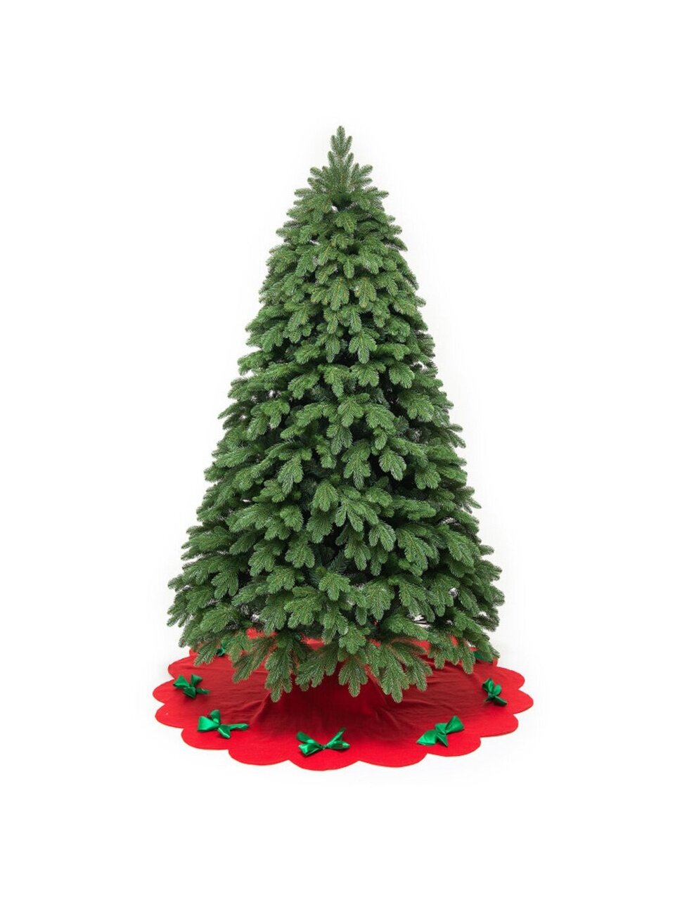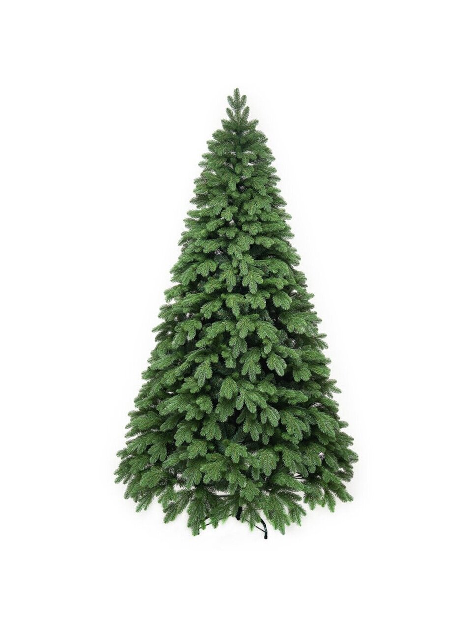 - Оптимальные параметры: высота 180 см, диаметр 123 см, 685 веток, крепкая металлическая подставка – выдержит игрушки и гирлянды.