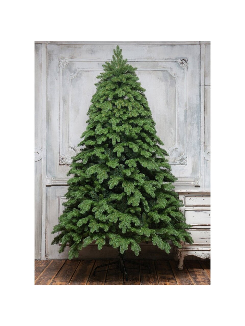 Высота – 180 см, диаметр – 123 см, количество веток – 685, материал хвои – литая + ПВХ-пленка, 7 ярусов, металлическая подставка.