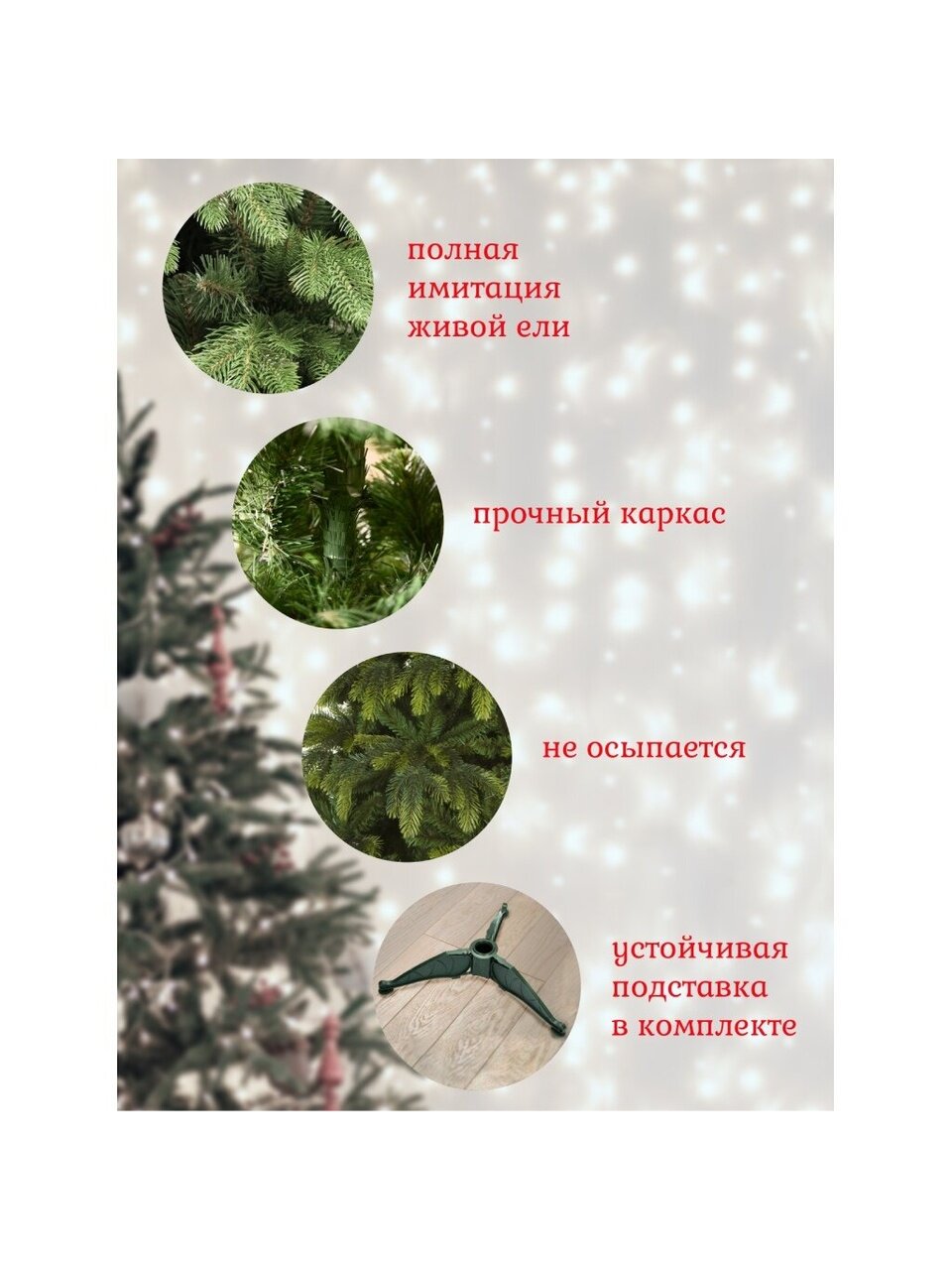 - Реалистичный внешний вид благодаря сочетанию литой хвои и ПВХ-пленки: елка максимально похожа на натуральную ель.
