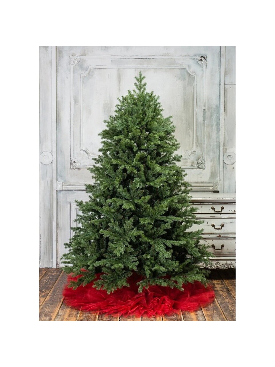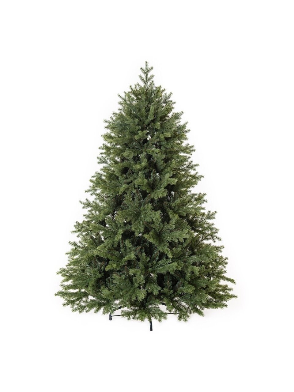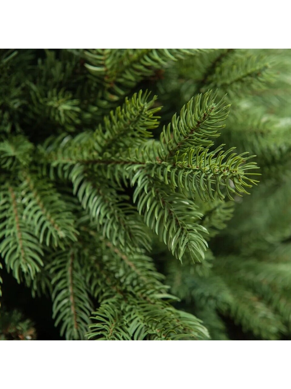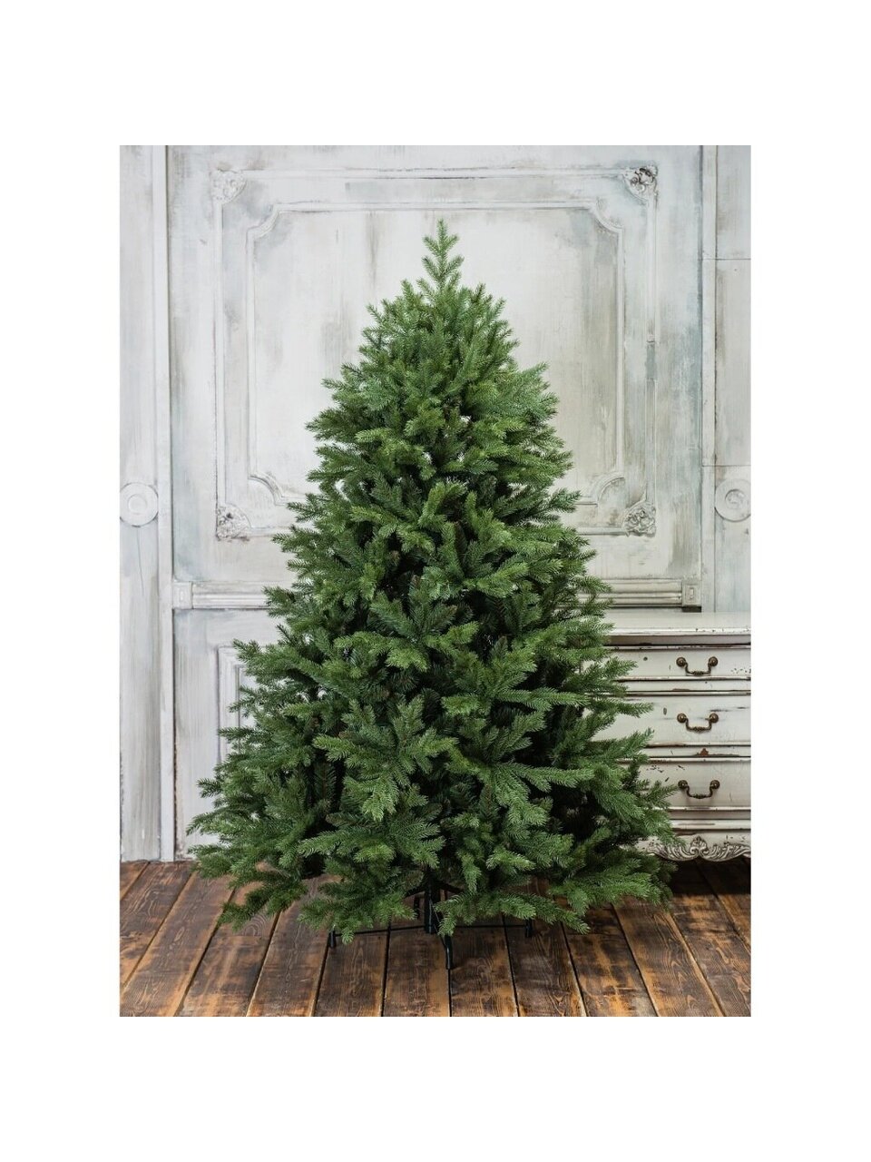 - Оптимальный размер — 210 см, диаметр 150 см, 1298 веток, устойчивая металлическая подставка, разборная конструкция