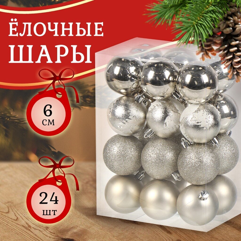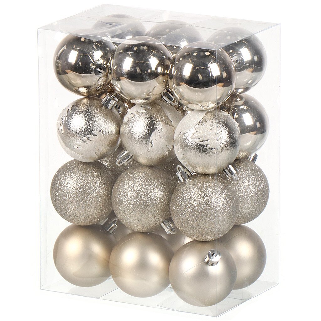 Набор елочных шаров 24 шт, 6 см, микс: небьющиеся украшения для стильной елки дома или на даче. Практичное решение для семей с детьми и подарков коллегам.