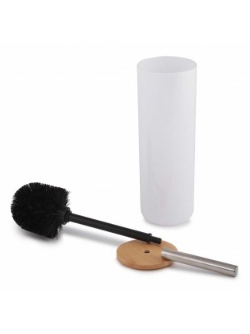 Ерш предназначен для поддержания чистоты туалета. Подставка и ерш изготовлены из качественного пластика, вставка произведена из натурального растительного материала - бамбук. Пластик не подвержен внешним воздействиям, легко моется и не желтеет со временем. Вставка из бамбука имеет специальную обработку, которая защитит ее от размокания и плесени. Ерш имеет разборную конструкцию. Ерш имеет оригинальный дизайн за счет сочетания двух разных материалов. Такое изделие может стать интерьерным решением для создания уюта в ванной комнате.