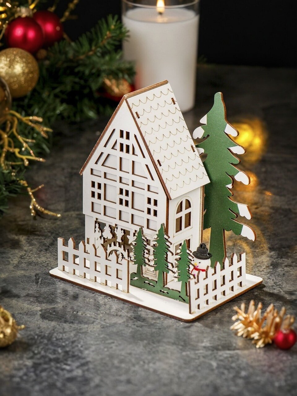 - Уникальный дизайн: белый настольный домик из МДФ создаёт атмосферу уюта и праздника;