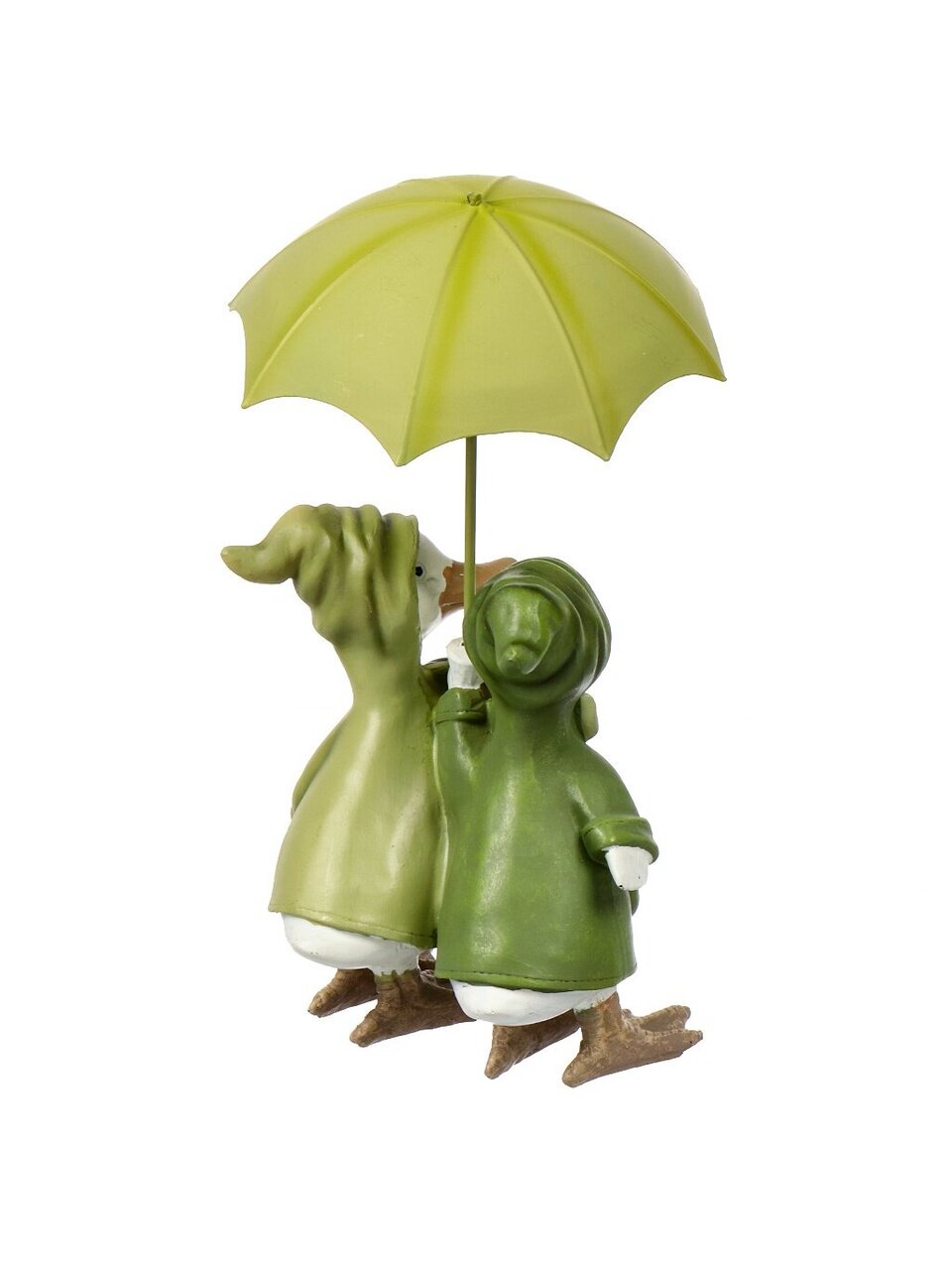Очаровательная декоративная фигурка станет оригинальным подарком для всех любителей милых вещиц. Изделие выполнено в виде уток под зонтиком.