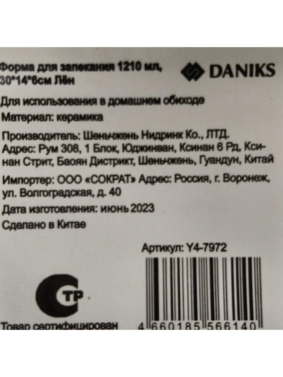 Вы можете приобрести «Форма для запекания керамика, 30х14х6 см, 1.21 л, прямоугольная, Daniks, Лен, Y4-7972» и другие товары в нашем интернет-магазине в Твери по низким ценам и с бесплатным самовывозом.