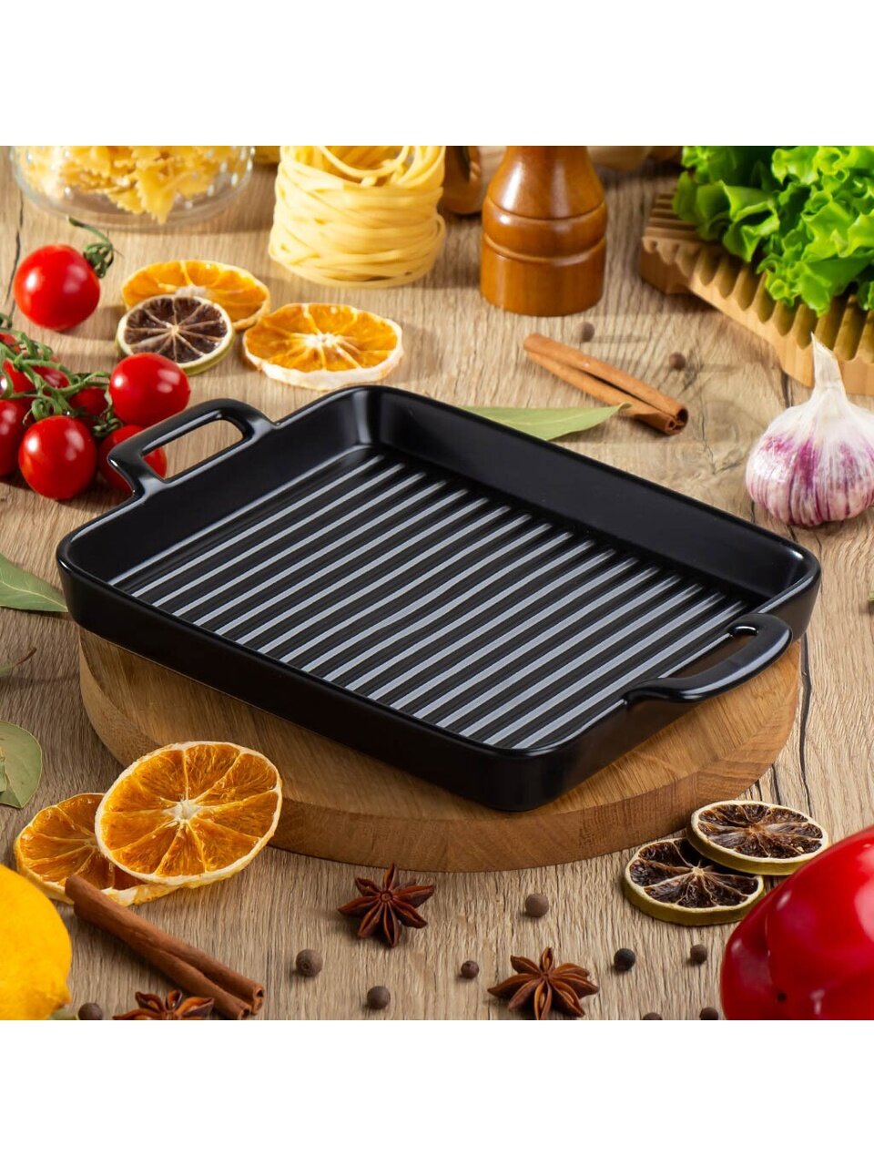 Часто спрашивают, чем отличается керамика от стеклянных или металлических аналогов. Керамика медленно нагревается и удерживает тепло, что идеально для томления и выпечки. Эта форма не имеет антипригарного покрытия, но рифленое дно предотвращает пригорание и облегчает подачу блюда. Подходит ли форма для подарка? Безусловно — стильный черный цвет и лаконичный дизайн впишутся в любой интерьер кухни.