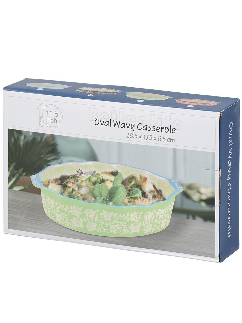 - Практичные размеры: 28.9х18.7х6 см, жаропрочная керамика, объем 1,5 л — удобно для запекания мяса, пирогов, кексов