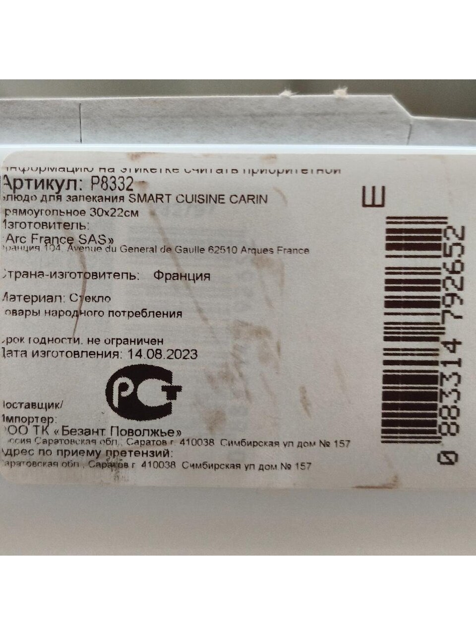 Вы можете приобрести «Форма для запекания стекло, 22х30 см, прямоугольная, Luminarc, Smart Cuisine Carin, P8332» и другие товары в нашем интернет-магазине в Ставрополе по низким ценам и с бесплатным самовывозом.