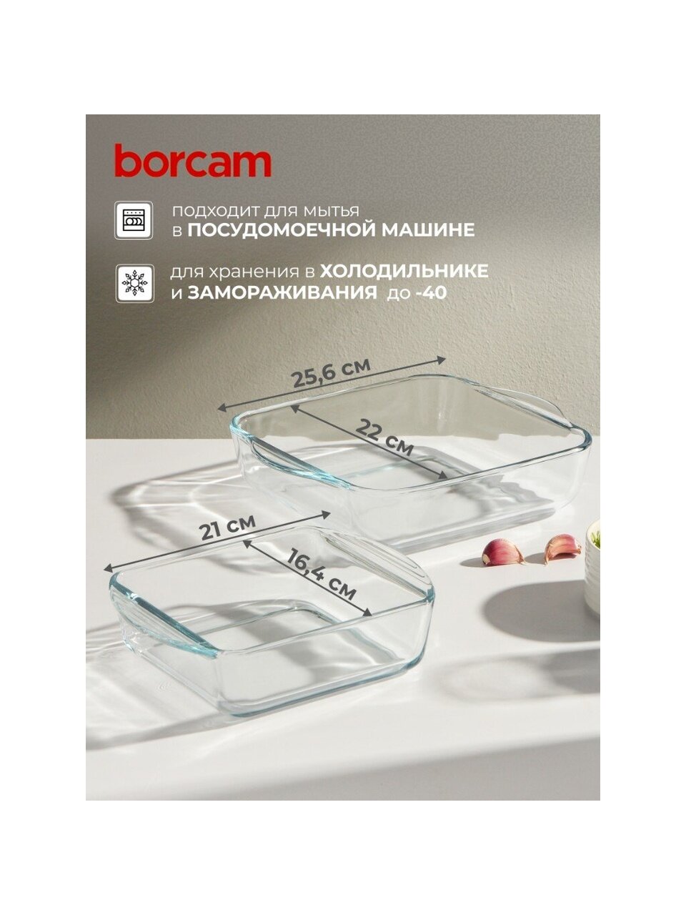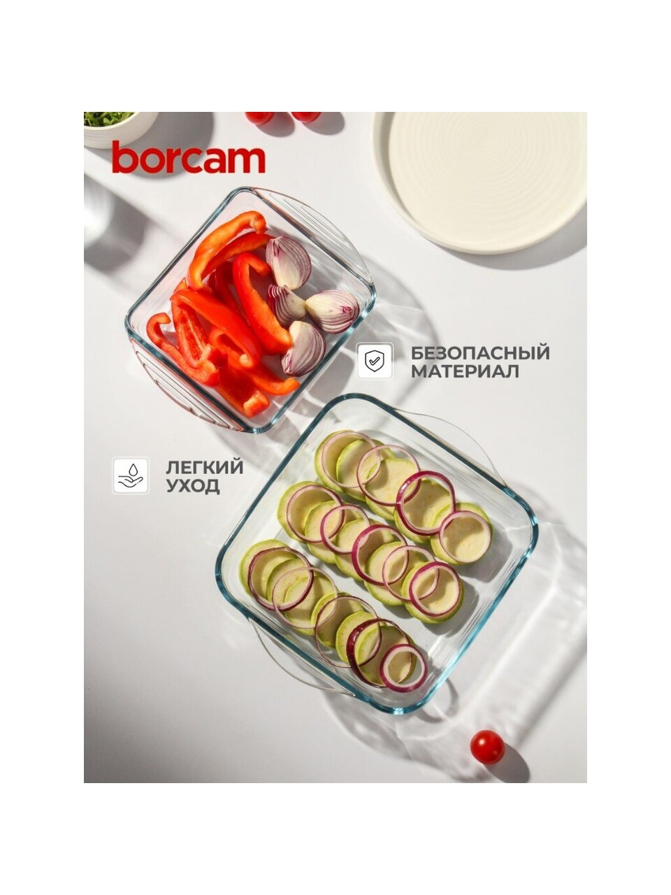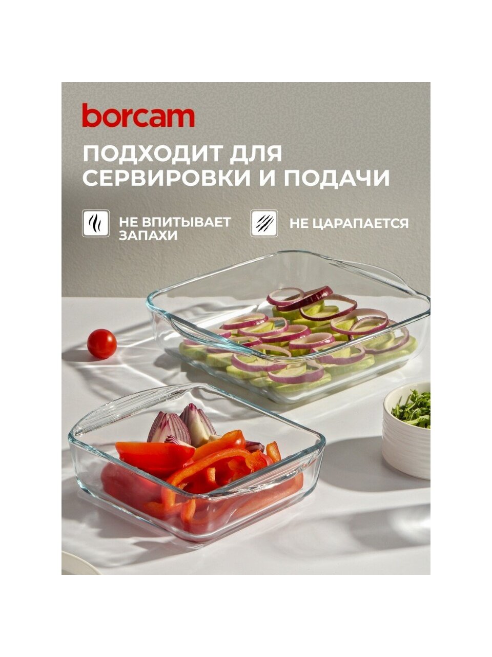Набор форм для запекания Borcam — это практичный выбор для тех, кто ищет, какую форму для запекания выбрать для дома, дачи или в подарок. Прозрачное жаропрочное стекло позволяет контролировать степень готовности блюда, а прямоугольная форма идеальна для курицы, рыбы, запеканок, пирогов и овощей. Благодаря отсутствию антипригарного покрытия можно не опасаться за выделение вредных веществ при нагреве.