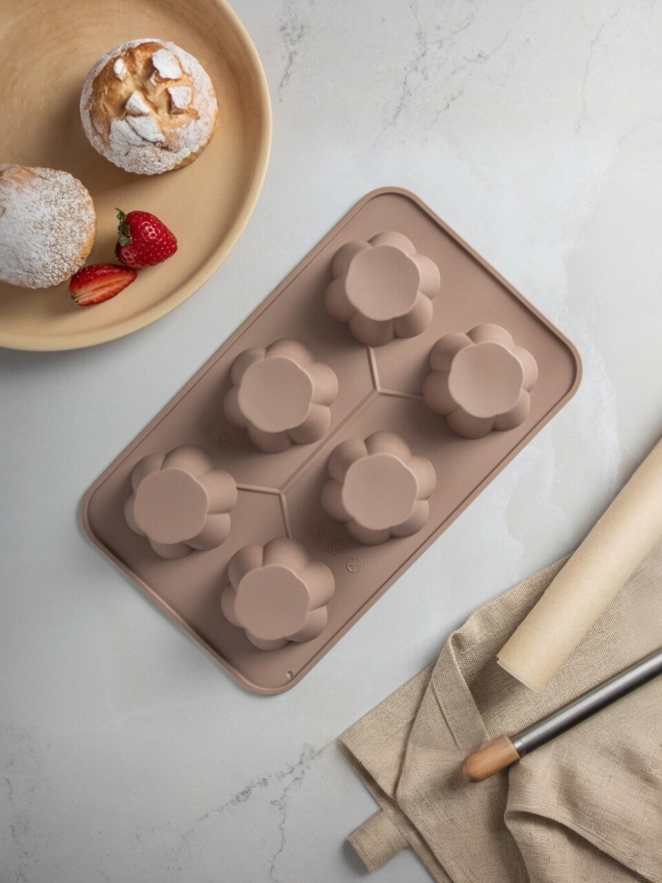 Силиконовая форма для маффинов Satoshi Алион — 6 ячеек, 17.4х29 см: легко готовьте десерты дома и на даче, не тратя время на отмывание посуды.