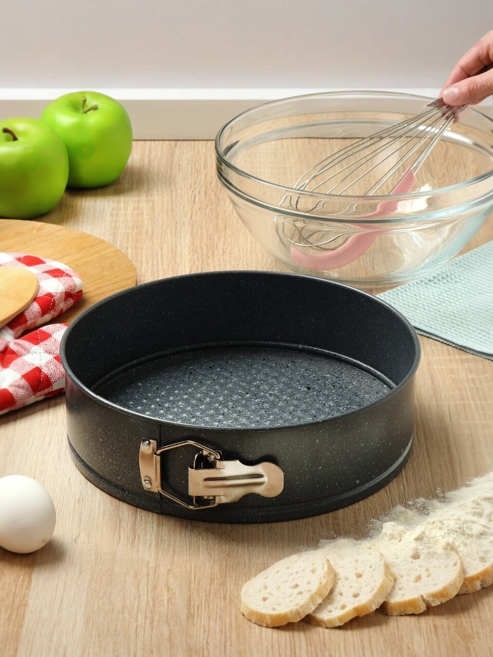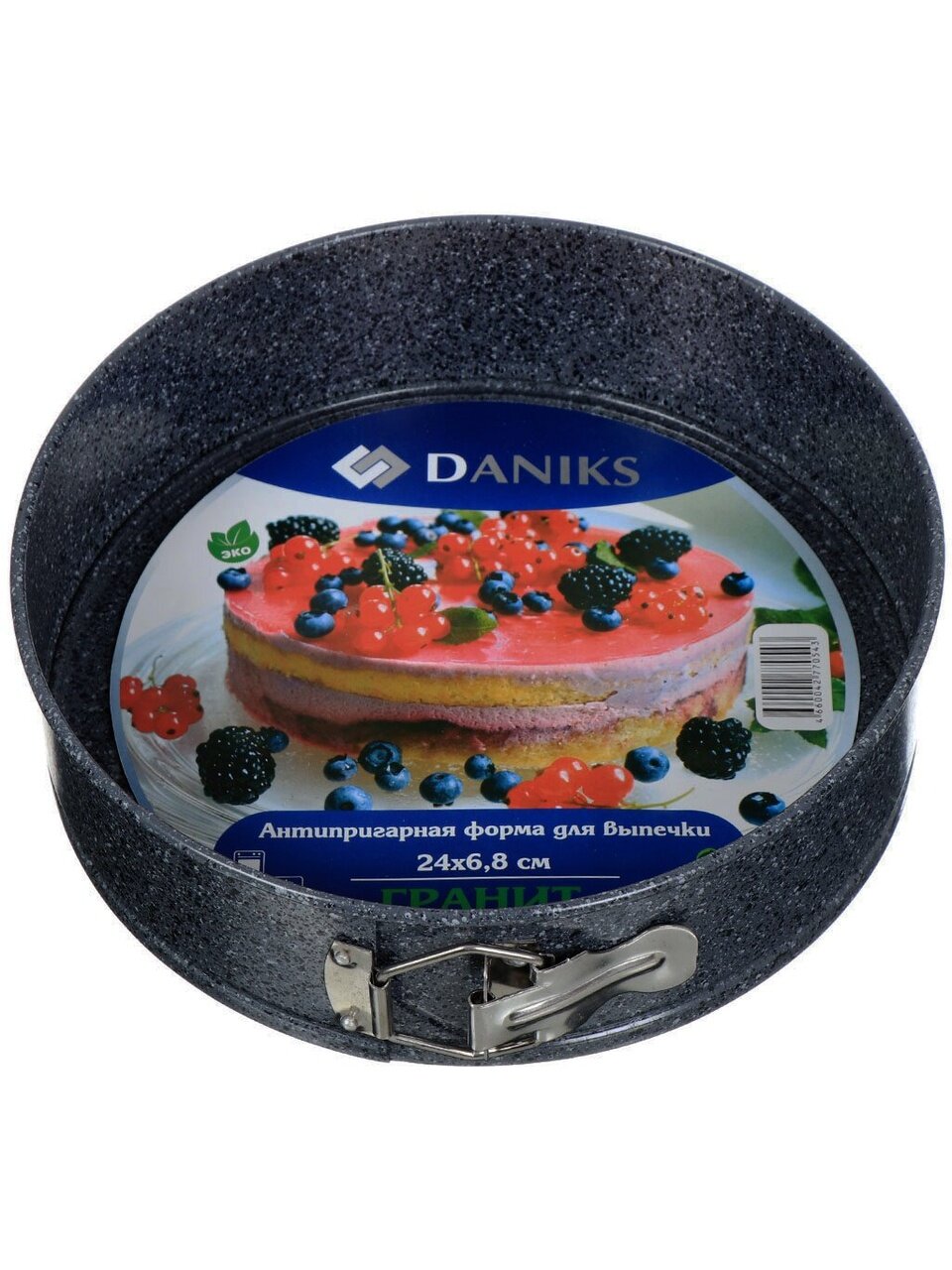 Ищете, какую форму для запекания выбрать для торта или пирога? Daniks Гранит — это круглая разъемная форма из прочной стали с антипригарным покрытием. Благодаря рифленому дну и съемной конструкции, ваша выпечка не прилипает и легко извлекается даже без пергамента. Такой вариант часто рекомендуют как универсальную форму для духовки, ведь она подходит для сладкой и несладкой выпечки: от чизкейков до кексов.