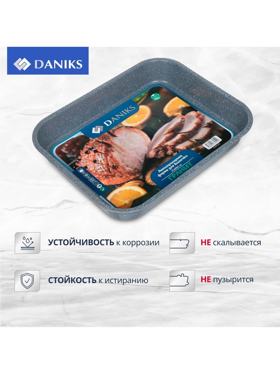 Прямоугольная форма для запекания Daniks Гранит 27х37.6 см: антипригарное покрытие, сталь, 5 л — идеальный выбор для вкусных блюд без прилипания и хлопот.