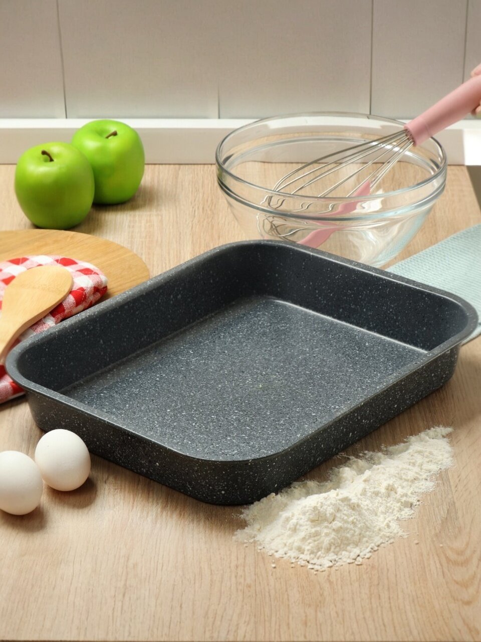 Форма для запекания Daniks Гранит — это современный противень из стали с антипригарным покрытием, который идеально подходит для духовки. Благодаря размеру 27х37.6х5 см и объёму 5 литров, вы легко приготовите на ней курицу, рыбу или пирог для всей семьи. Если вы ищете, какую форму выбрать для духовки или что лучше для запекания без прилипания, обратите внимание на Daniks: её покрытие сокращает время на мытьё и предотвращает пригорание даже при минимуме масла.