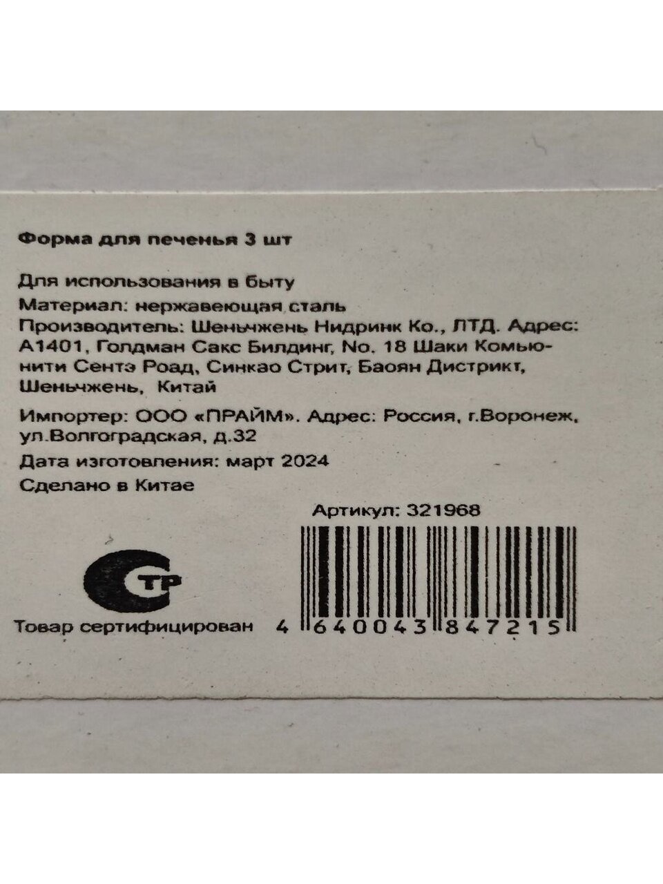 Вы можете приобрести «Форма для печенья сталь, 3 шт, фигурная, Y3-1069» и другие товары в нашем интернет-магазине в Старом Осколе по низким ценам и с бесплатным самовывозом.