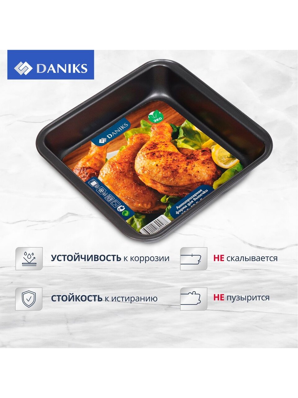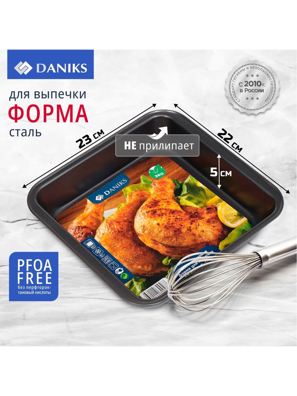 Форма для запекания Daniks 22х23.2х5 см — антипригарная сталь для идеальной выпечки и запекания без прилипания, подходит для духовки и посудомоечной машины.