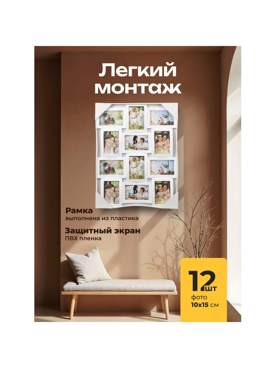 Вы можете приобрести «Фоторамка-коллаж на 12 фото, 47х62 см, белая, Изгибы» и другие товары в нашем интернет-магазине в Клинцах по низким ценам и с бесплатным самовывозом.