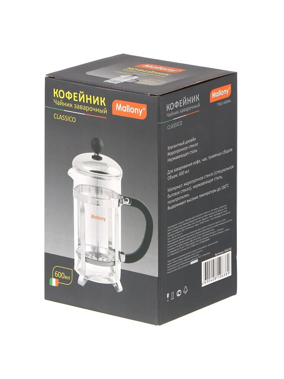 Вы можете приобрести «Френч-пресс 0.6 л, нержавеющая сталь, Mallony, Classico, серебряный, 950144» и другие товары в нашем интернет-магазине в Серпухове по низким ценам и с бесплатным самовывозом.