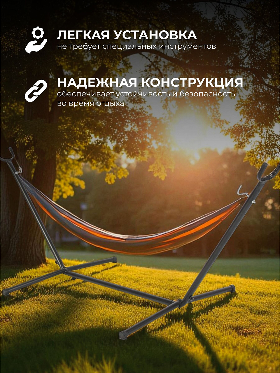 Стойка для гамака, 260х107х110 см, C060032 — идеальное решение для создания уютной зоны отдыха на даче, в саду или даже в доме. Продуманная конструкция обеспечивает надежную поддержку для гамака, позволяя расслабиться и наслаждаться отдыхом в любое время. Благодаря универсальному размеру стойка подходит для большинства стандартных гамаков, обеспечивая стабильность и долговечность. Современный дизайн гармонично впишется в любой интерьер или экстерьер, добавив уюта и стиля в пространство.