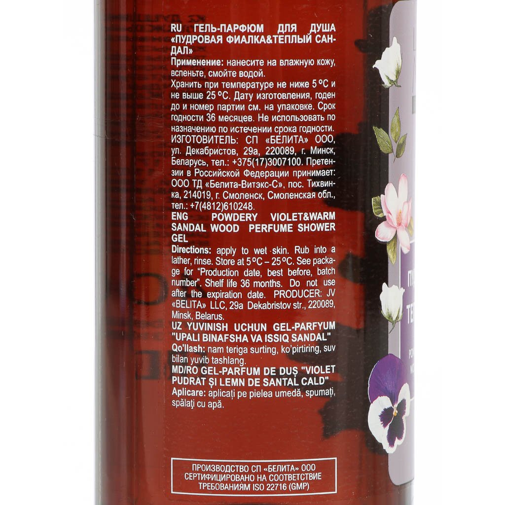 Гель-парфюм для душа Bielita «Пудровая фиалка & Теплый сандал», 400 мл: глубокое очищение, стойкий аромат, забота о чувствительной коже — почувствуйте SPA-уход каждый день.