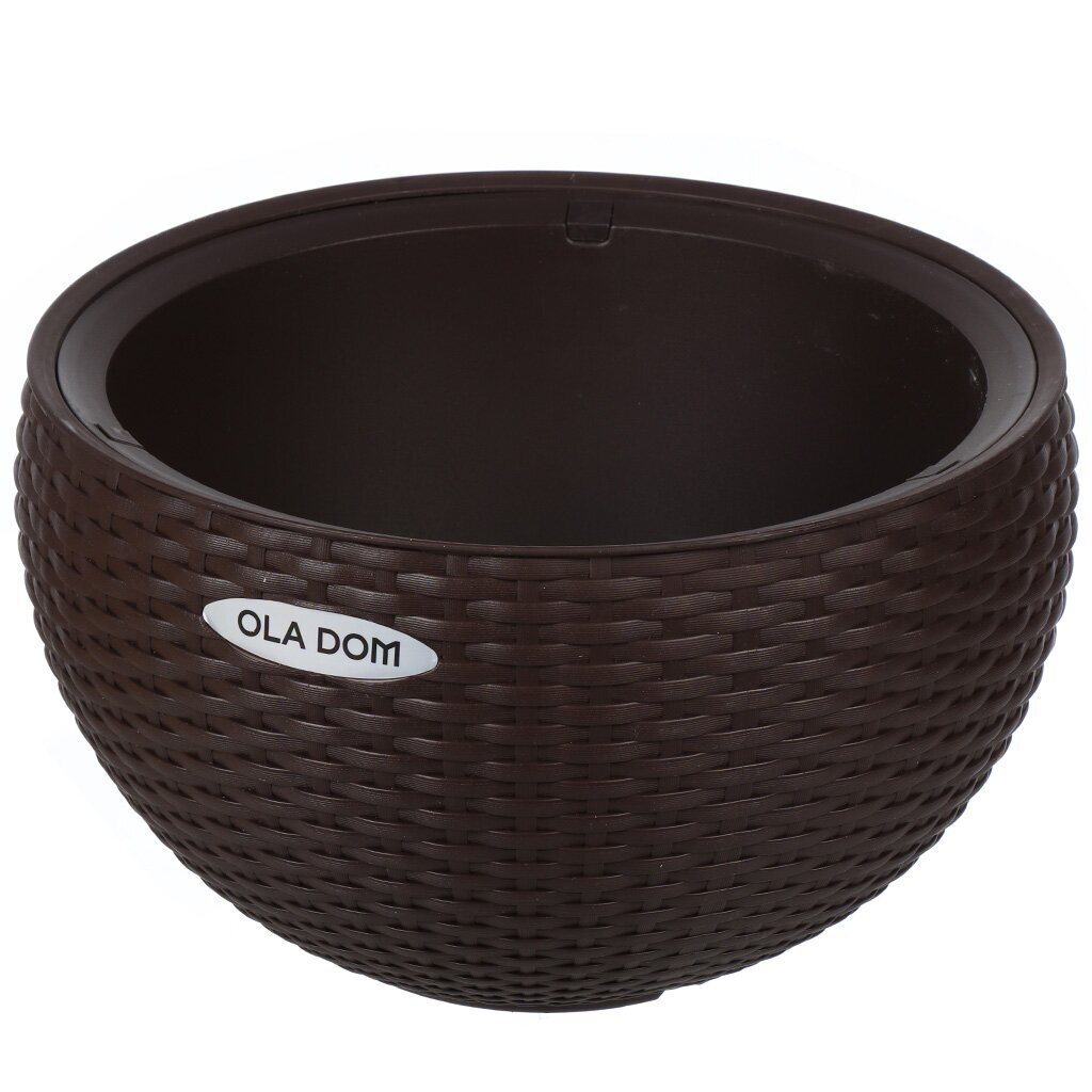 Кашпо Ola Dom создано в современном стиле, имитирующем плетение ротанга. Оно прекрасно впишется в интерьер дома или станет украшением садового участка.